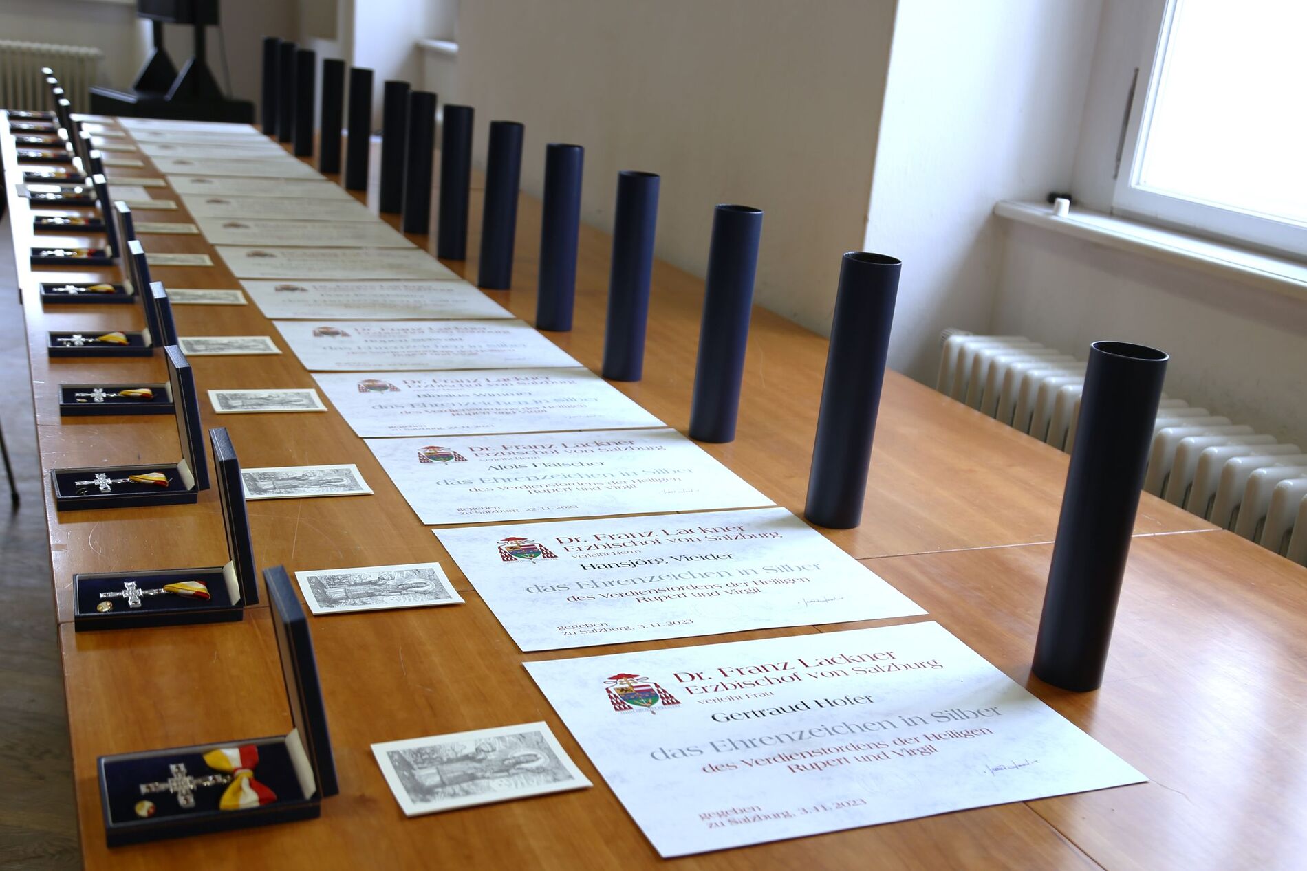 „Die heiligen Rupert und Virgil prägen uns neben der heiligen Erentrudis auch heute noch durch ihr geistliches und geistiges Erbe über die Jahrhunderte hinweg. Es ist ein Nachlass, den man immer wieder in unterschiedlicher Weise spüren kann“, sagte Kandler-Mayr. Viele ihrer positiven Eigenschaften zeigen auch die neuen Trägerinnen und Träger des Rupert-und-Virgil-Ordens. Vor allem „die Liebe zur Kirche und zum Glauben“ sowie zu den Menschen hob sie hervor. „Mit festem Willen, für die Menschen in der Kirche zur Verfügung zu stehen und mit Umsicht, Feingefühl, Organisationstalent, Kreativität, Großmut, Überzeugung, ihren Beitrag zu leis-ten“, sei ihnen allen gemeinsam.