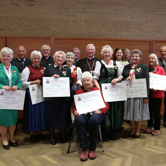 Die Geehrten sind: Anna Bruckmoser, Ilse Frühstückl, Viktoria Christine Krugluger, Pauline Leprich, Hildegard Meller, Maria Kücher und Walter Fath aus der Pfarre Salzburg-Lehen sowie Gertraud Hofer und Hansjörg Vieider aus Kirchdorf in Tirol. Aus Niedernsill geehrt wurde Katharina Lackner und aus Waidring Peter Brandstätter, Alois Flatscher, Rupert Seiwald und Blasius Wimmer.