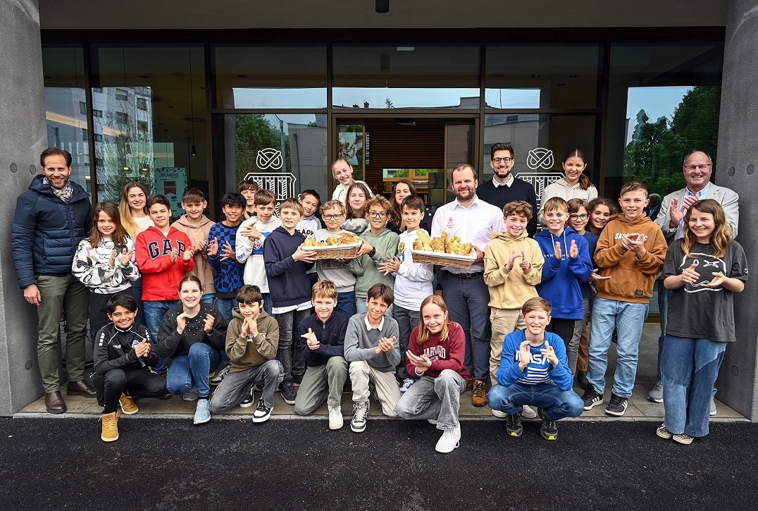 Salzburg. Mit der Aktion Schuljause lud die Erzdiözese Salzburg die Jugendlichen zu einem feinen Gebäck von der Bäckerei Pföß ein. Die Initiative, die von Schuldirektor Winfried Penninger und Martin Kalss von der Immobilienentwicklung der Erzdiözese unterstützt wurde, brachte nicht nur Köstliches auf den Tisch, sondern drückte neben anderen Projekten auch den Zusammenhalt von Schule, Erzdiözese und Betrieben am Campus Borromäum aus.