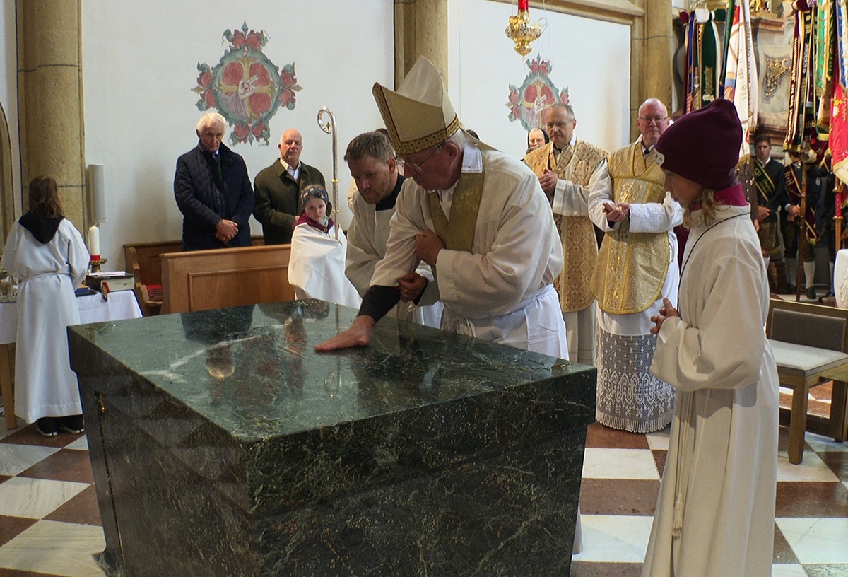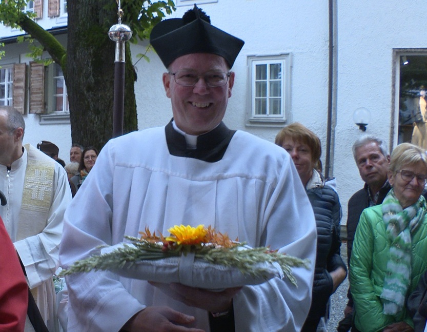 Bad Hofgastein. Der neue Seelsorger von Dorfgastein und Bad Hofgasten, Dechant Virgil Zach (im Bild oben), genoss die große Feier sichtlich – und mit ihm die vielen Gläubigen, die gekommen waren: von der Landjugend über die Bäuerinnen bis zu einer Vielzahl örtlicher Vereine. Zum Erntedank mit der festlich geschmückten Erntekrone gesellte sich die Weihe des neuen Altars (im Bild unten), die ebenso wie die Installation des Pfarrers von Erzbischof Franz Lackner vorgenommen wurde. Damit ist auch eine mehrjährige Innenrenovierung der Pfarrkirche Bad Hofgastein abgeschlossen.