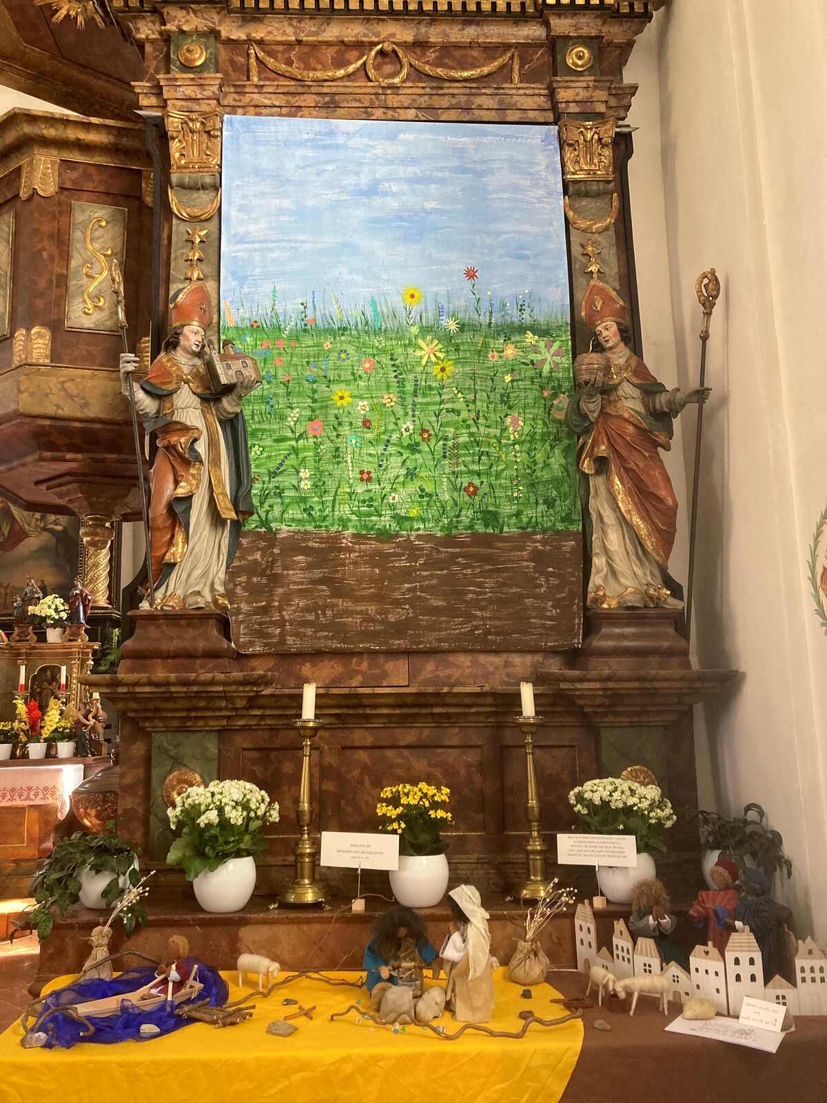 Schnell wurde der neue Kinderkirchenaltar in der Pfarrkirche Elixhausen zu einem besonderen Blickfang und einem spirituellen Kraftort. Was ursprünglich als Übergangslösung während der Renovierung gedacht war, hat sich zu einer dauerhaften und lebendigen Einrichtung entwickelt. „Wir haben den rechten Seitenaltar zu einem kindgerechten Verkündigungsort umgestaltet. Er präsentiert wechselnde Altarbilder, gemalt von Hilda Unterrainer, und biblische Szenen. Diese laden dazu ein, innezuhalten, die Geschichten des Glaubens neu zu entdecken und sich berühren zu lassen – nicht nur Kinder, sondern Besucherinnen und Besucher jeden Alters“, erklärt Pfarrassistent Gerhard Schaidreiter.