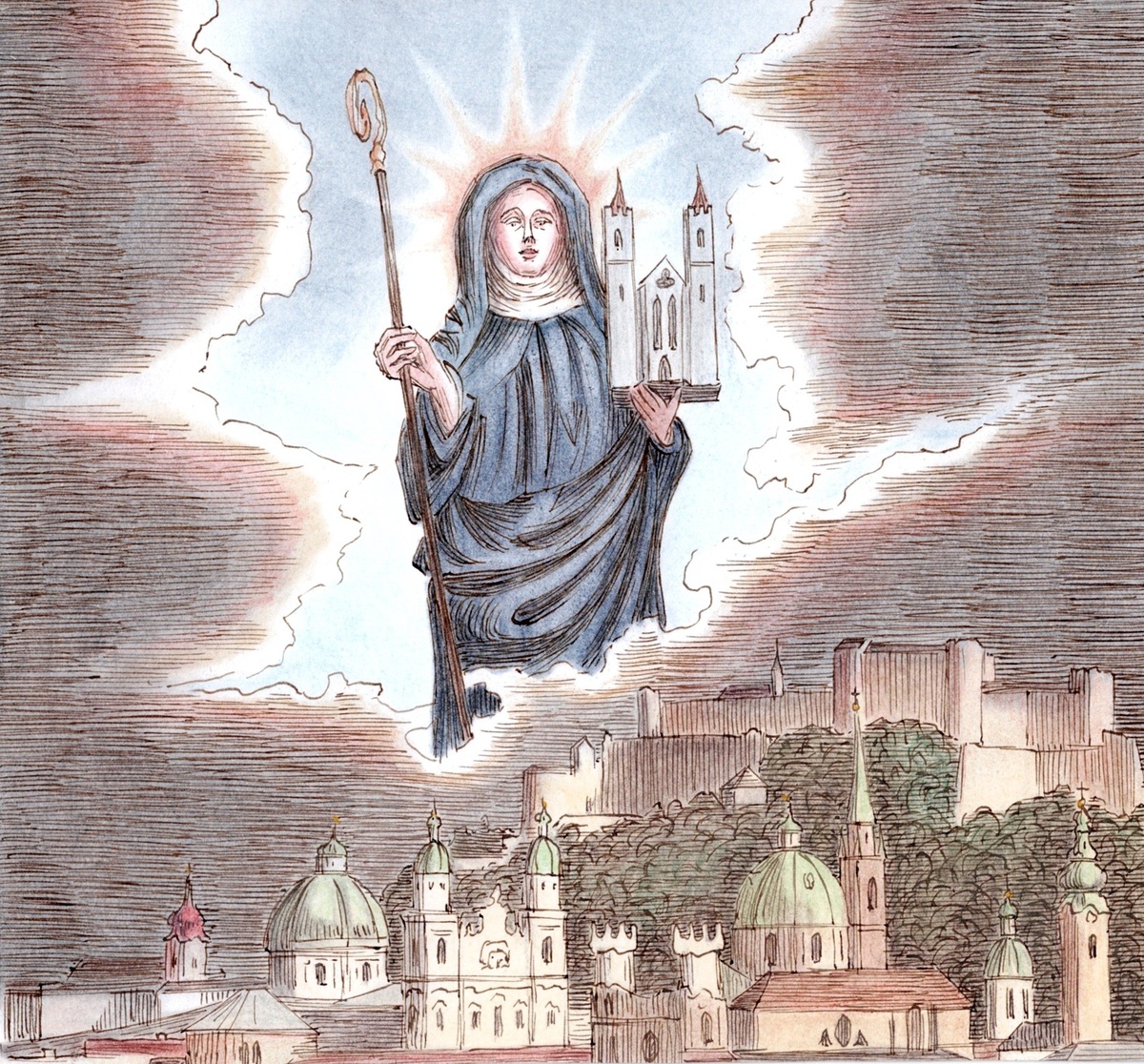 - Mit einer Festwoche rund um den 30. Juni lässt Salzburg seine Diözesan- und Landespatronin Erentrudis hochleben siehe Karikatur). Als Wertschätzung in den Bereichen Bildung, karitative Projekte, Kunst und Kultur wird an vier Ehrenamtliche erstmals der neu ins Leben gerufene „Erentrudis-Orden“ der Erzdiözese vergeben.