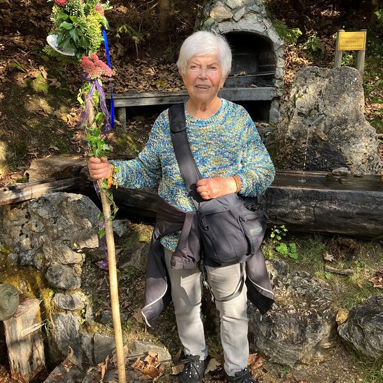Gretl Stocker aus Schwoich freute sich, den Pilgerstab ein Stück des Weges zu tragen.