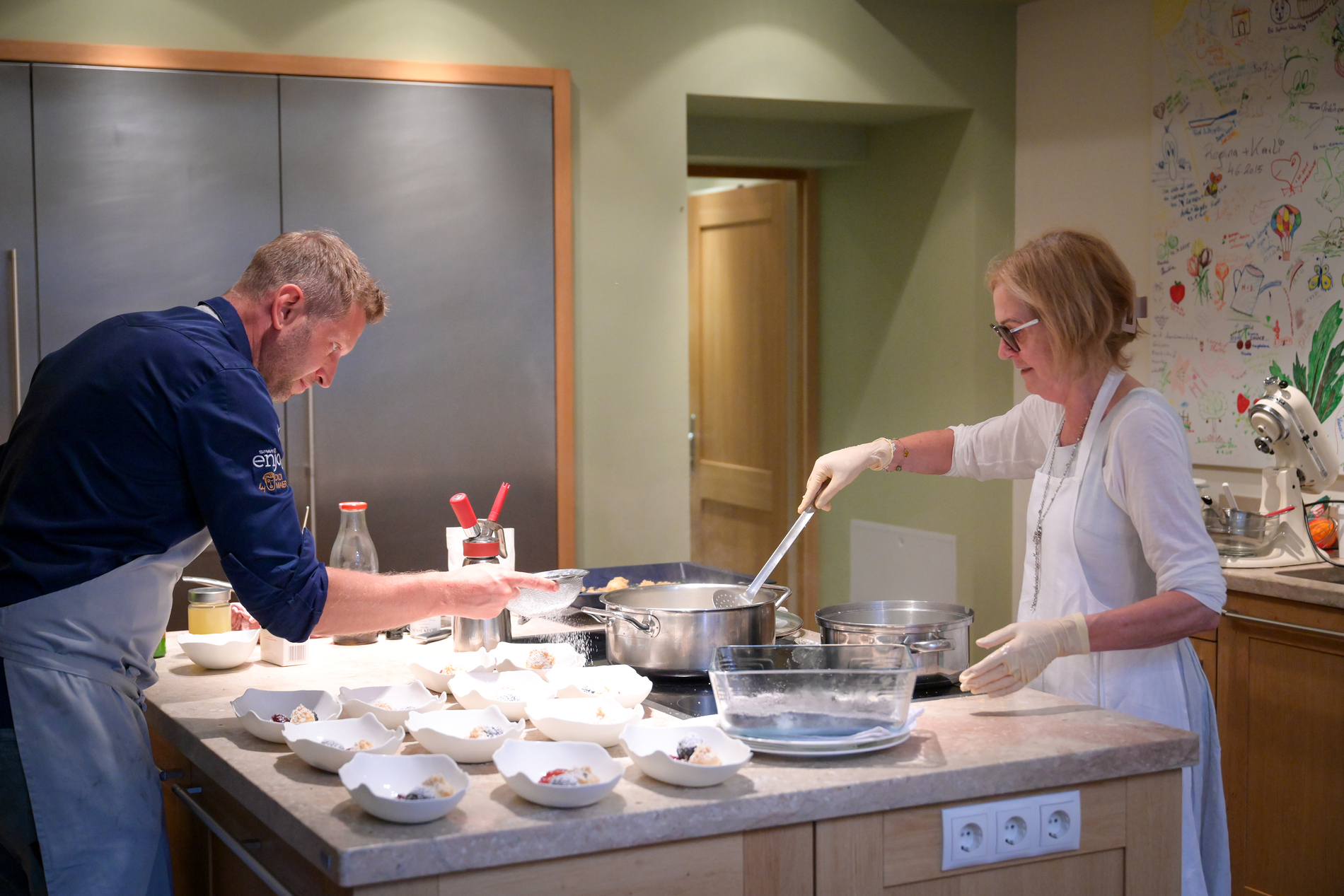 Johanna Maier: Meine Kinder waren mit mir in der Küche. Besonders der Didi war meine große Stütze. Als ich dann in die Jahre gekommen bin, hat dann der Didi gesagt: ‚Gut Mama, du darfst zu Hause bleiben und ich gehe mit meiner Frau und mit meinen Kindern zur Benefizsuppe.‘ Für mich ist es wunderschön, dass der Didi das weitermacht und man merkt bei ihm, es ist Herzblut dabei. Manche machen eine Charity-Veranstaltung. Aber ihm ist das so viel wert, dass das wirklich etwas ganz Besonderes ist. Das schätze ich sehr an ihm.