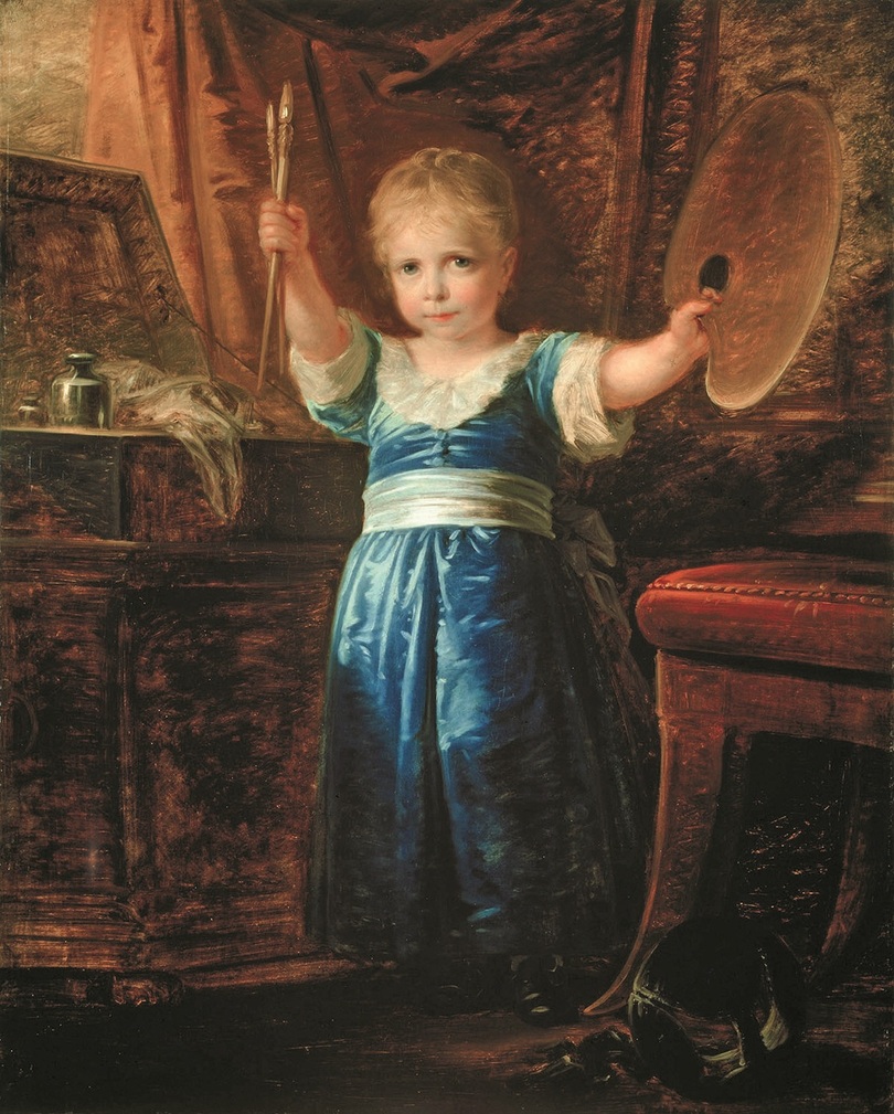 Heinrich Friedrich Füger zeigte nicht nur sich selbst, sondern auch den vierjährigen Sohn mit Malerutensilien (im Bild oben). Damit verlieh er wohl der väterlichen Hoffnung Ausdruck, der Sohn möge in die Fußstapfen des Vaters treten. (Es sei verraten, es wurde nichts daraus.)
