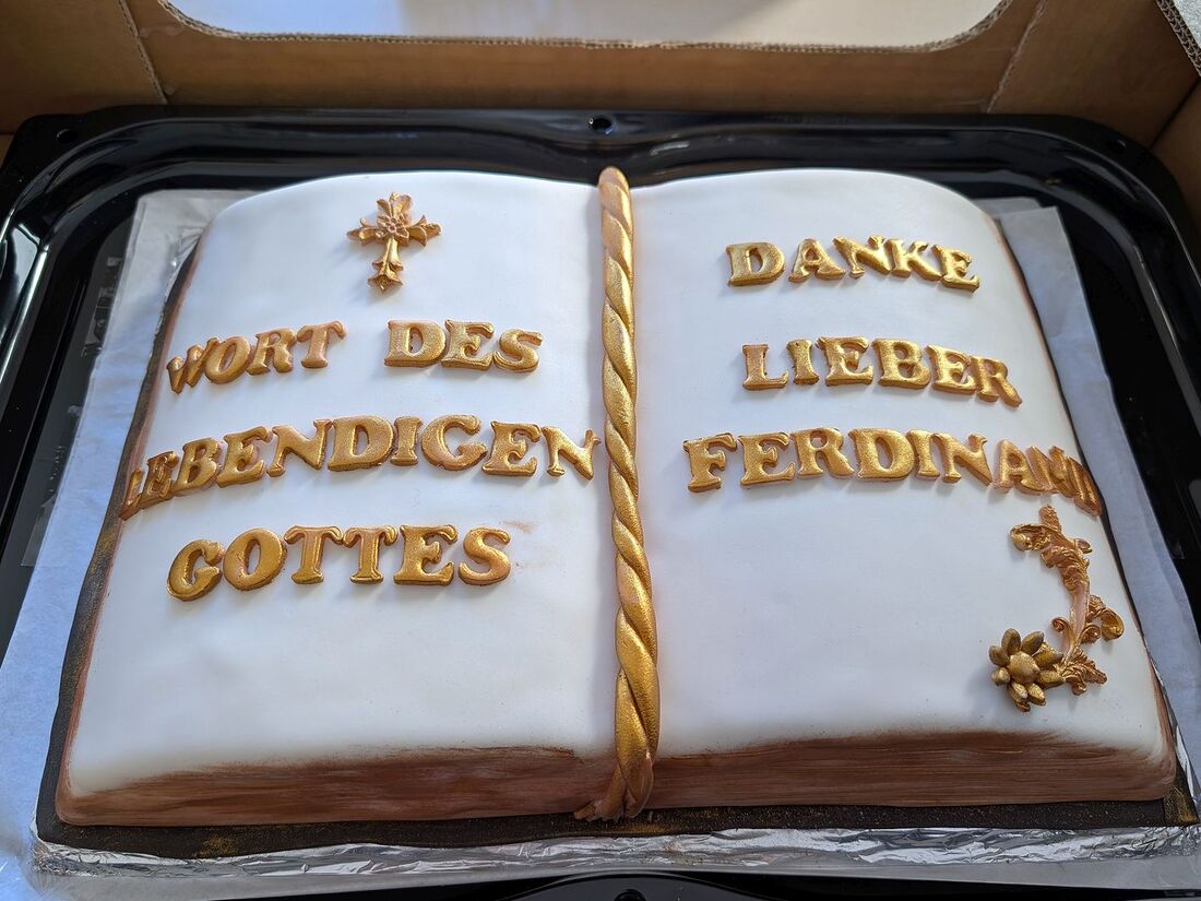 Er war jahrzehntelang Lektor und Kommunionhelfer. Diese beiden Funktionen legte er im vergangenen Jahr zurück. Am Christkönigsonntag bedankte sich die Pfarre offiziell bei ihm für seinen unermüdlichen Einsatz und versüßte ihm den Abschied mit einer Torte. Danke lieber Ferdinand, bleib weiter so lebensbejahend und humorvoll – dein Schmäh trägt immer wieder zur allgemeinen Erheiterung bei.
