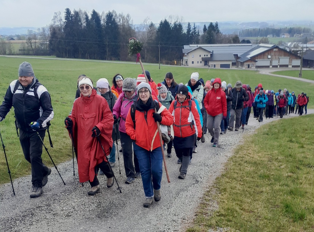Berndorf. Von frühlingshaften Ostertemperaturen war in der Karwoche noch keine Rede, so trotzte die ambitionierte Gruppe auf dem Europäischen Pilgerweg „Via Nova“ dem winterlichen Wetter (im Bild). Nach dem Start in Berndorf ging es für die Pilgerinnen und Pilger über 17 Kilometer bis zur Pfarrkirche Lengau, wo mit einer Andacht die Einstimmung auf das bevorstehende Osterfest abgeschlossen wurde. Besondere Impulse der Pilgerbegleiter galten einer alten Richtstätte bei der Kirche Astätt, wo noch bis 1762 Menschen durch die Hand des Scharfrichters zu Tode kamen.