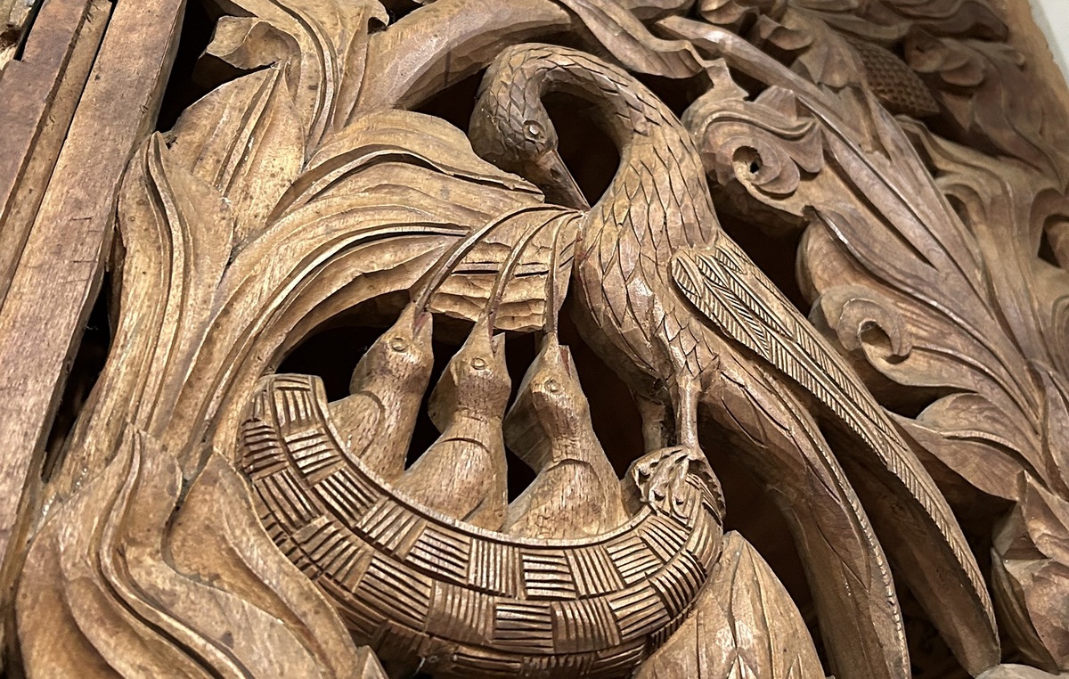Beim Betreten des Gotteshauses öffnet sich ein unvergleichlicher Raum mit neun barocken Altären, der durch die besonderen Fenster in ein einzigartiges Licht getaucht wird. Das Auge des Betrachters erblickt Engel, Heilige – und auffallend viele heilige Vögel von kunstgeschichtlicher Bedeutung. In den wertvollen Intarsienarbeiten des Chorgestühls finden wir Strauß und Pelikan (im Bild unten), beides „allegorische Bilder für Gott und Christus“, so der Pfarrer. Der dritte heilige Vogel ist als Skulptur der Steinmetzfamilie Zenzmaier im Hof zu bewundern: ein Phönix, der einst an der Umfassungsmauer als Bild eines bunt schillernden „fremden Vogels“ für Staunen sorgte. Er ist von der seit dem 15. Jahhundert bestehenden Erzbruderschaft an der Wallfahrtskirche St. Leonhard gestiftet, die bis heute besteht.