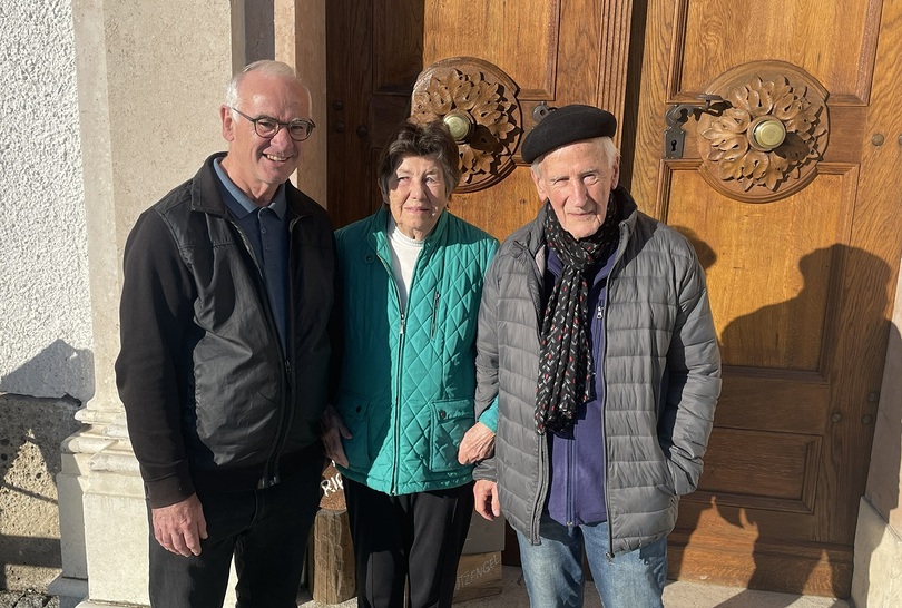 Oberndorf bei Salzburg. Hermann Schneider aus Laufen überquert fast täglich die deutsch-österreichische Grenze, um die Wallfahrtskirche Maria Bühel bei Oberndorf zu besuchen. Kein Wunder, verbinden er und seine Frau Jill (im Bild unten mit Wallfahrtsseelsorger Heribert Jäger/l.) mit diesem „Heiligen Ort“ doch ganz persönliche Erinnerungen: „Wir haben hier geheiratet und feiern nächsten Juni den 60. Hochzeitstag. Der Pfarrer in Laufen wollte uns damals nicht trauen, weil Jill anglikanisch war, also fanden wir in Maria Bühel einen pensionierten Priester, der es gemacht hat. Rückblickend sind wir heute sehr dankbar, dass es hier stattgefunden hat.“
