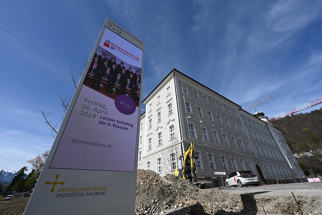 Erzdiözese Vor dem Borromäum informiert nun ein „Mini-Leuchtturm“ Einer der größten Info-Bildschirme seiner Art ragt seit kurzem vor dem Bildungscampus Borromäum in den Salzburger Himmel.