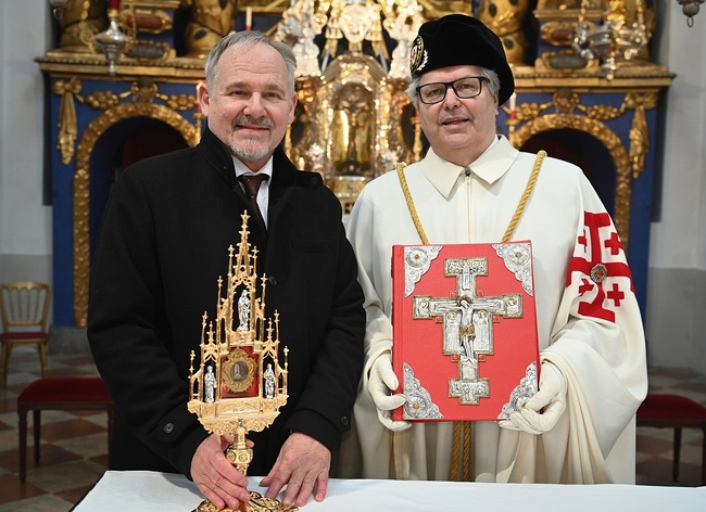 Erzdiözese Kostbare Reliquie zur Erinnerung an das Sterben Christi Ein Stück der Dornenkrone Christi wurde dem Ritterorden vom Heiligen Grab zu Jerusalem geschenkt und feierlich in der Salzburger Wallfahrtsbasilika Maria Plain überreicht.