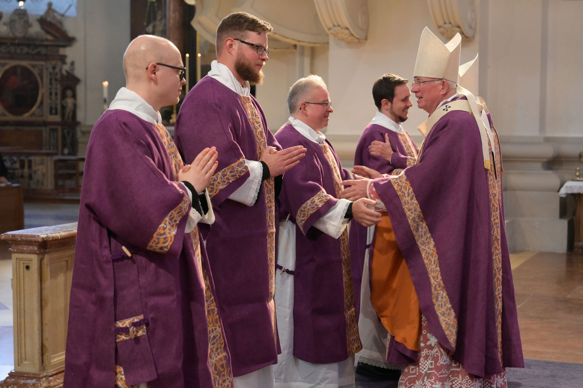Nicht menschliche Fähigkeiten, sondern Gottes Führung solle ihr Wegweiser sein. Die Neugeweihten – Lorenz Goppert, Roland Münster, Josef Straub und Manuel Zehetner – beginnen nun ihren seelsorglichen Dienst in verschiedenen Pfarren der Erzdiözese Salzburg und treten in eine neue Phase ihres geistlichen Weges ein.