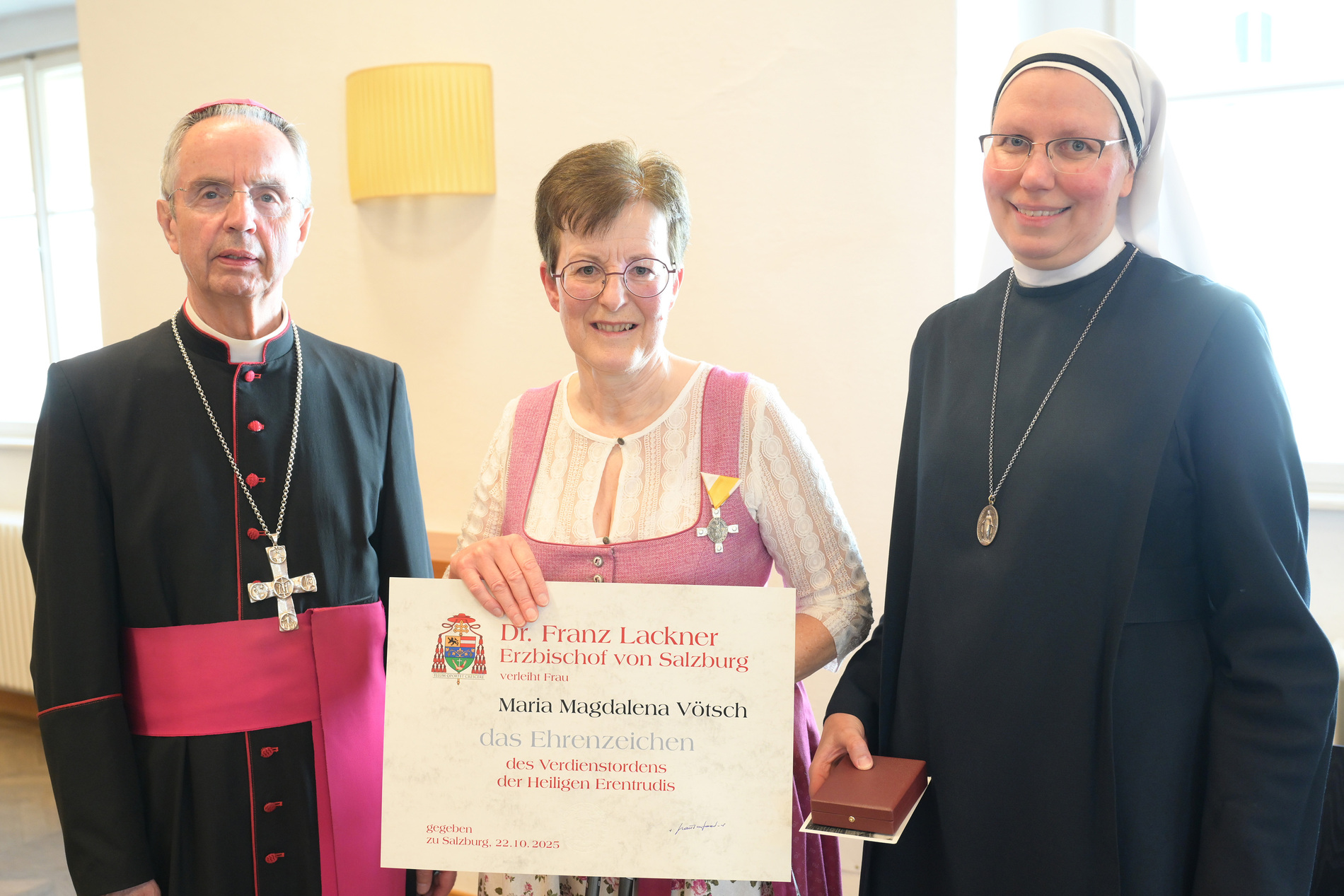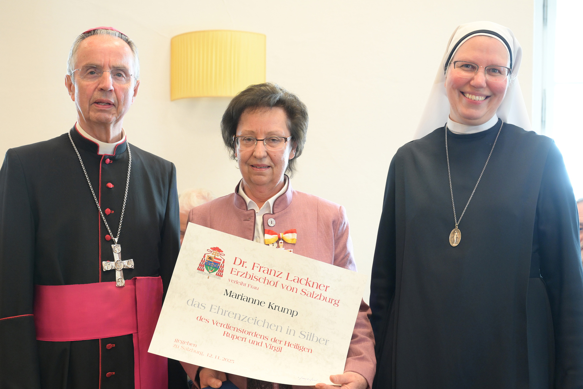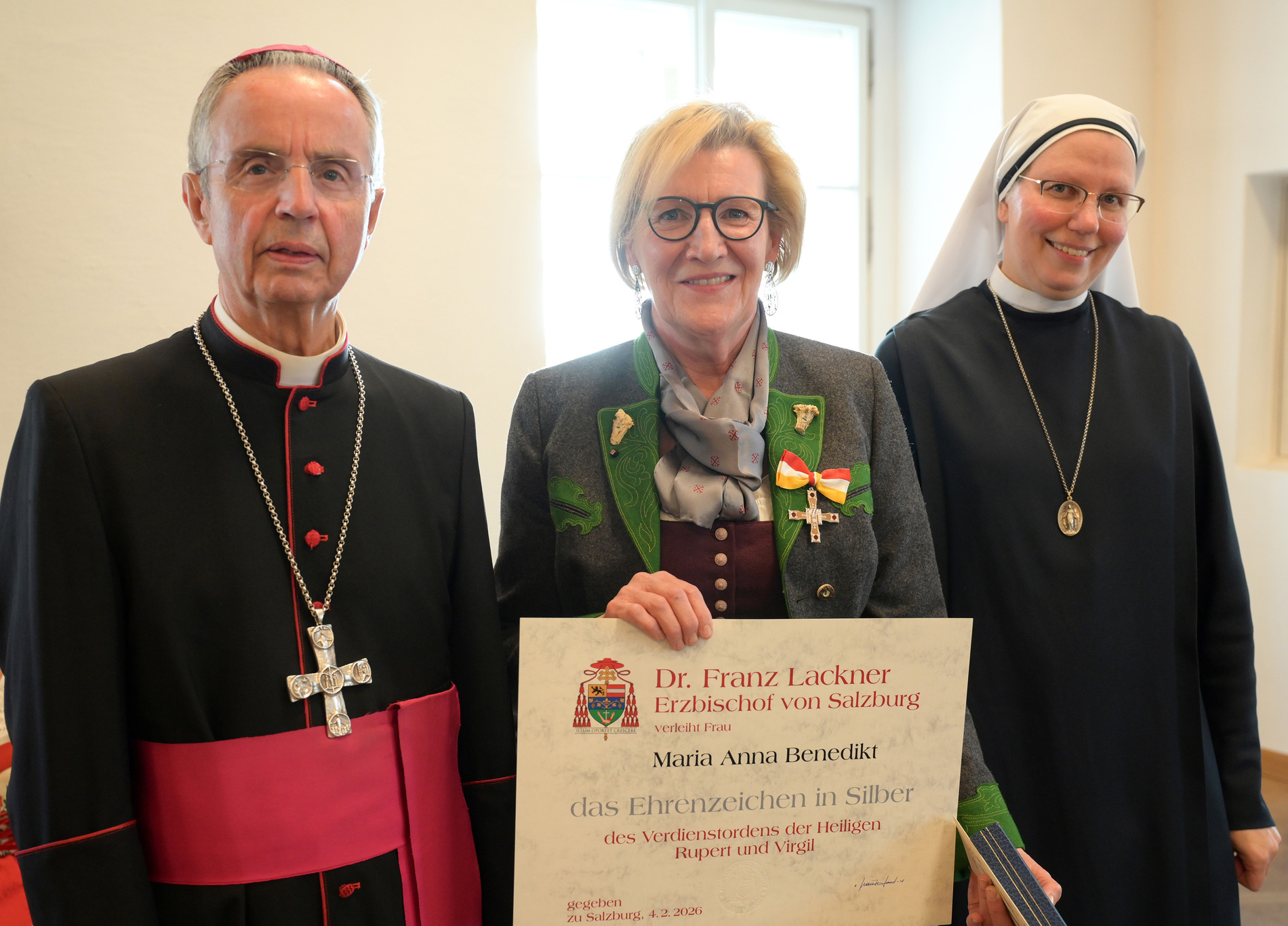 Im Namen von Franz Lackner würdigte er ihr langjähriges ehrenamtliches Engagement in den Pfarren. Vergeben wurden zwölf Rupert- und Virgil-Orden in Silber sowie ein Erentrudis-Orden. Die Geehrten zeichnen sich durch Einsatz in Liturgie, Caritas und Gemeinschaft aus und tragen wesentlich zu einem lebendigen kirchlichen Leben bei. Auch ihre Familien wurden für Unterstützung und Verständnis gewürdigt. Die Auszeichnung gilt als Zeichen des Dankes und der Anerkennung.