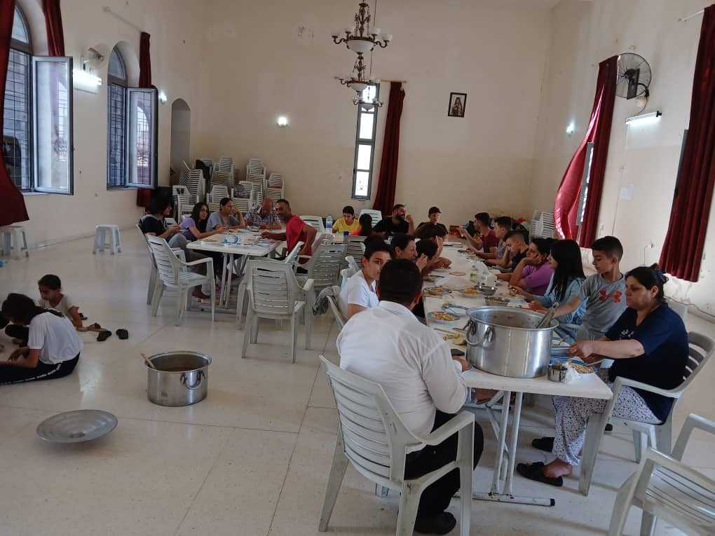 Rund hundert Vertriebene wurden in der Kleinstadt Khabab von der örtlichen melkitischen Kirche aufgenommen und werden von den Schwestern von Besancon versorgt, die in Khabab eine Niederlassung haben. Die Versorgungslage sei dramatisch, berichtete Oberin Sr. Mona Dhem dem ICO (im Bild links.) Es gebe immer weniger Lebensmittel und auch sonst fehle es an allen notwendigen Gütern für den täglichen Bedarf. Die Geflüchteten, darunter viele Kinder, hätten zwar ihr Leben retten können, wüssten nun aber nicht weiter. Ihre Dörfer und zahlreiche Kirchen wurden komplett zerstört oder in Brand gesetzt.